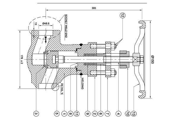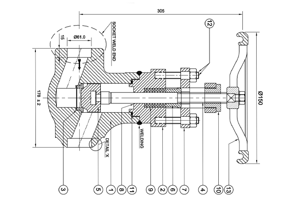 | Ends | Screwed End, Socket Weld End, Butt Weld End |